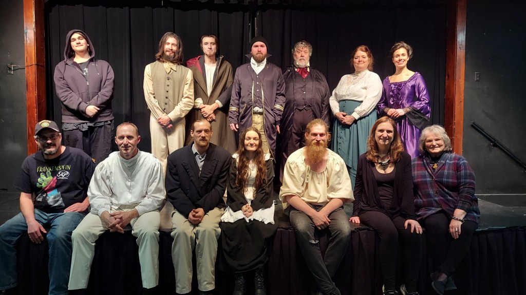 Thank you to the Wooden Spoon for the catered dinners and thank you to OJ’s Midtown Cafe for the pies. Thank you to Laurel at Bay Impressions for the posters and programs. Thank you to WBAY, WOCO, and the Peshtigo Times for the pieces they did for us. And thank you to Green Bay Fear and The Good Place for hosting our cast parties. And a posthumous thank you to the author of the source material – Mary Wollstonecraft Shelley!