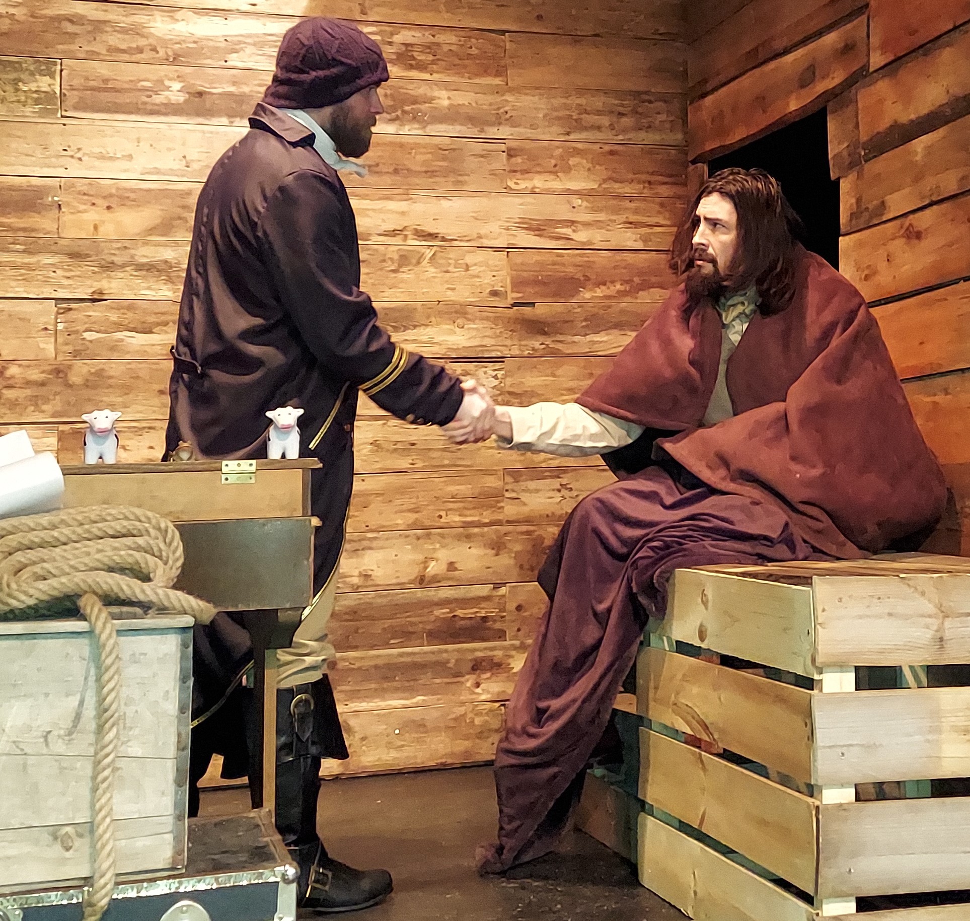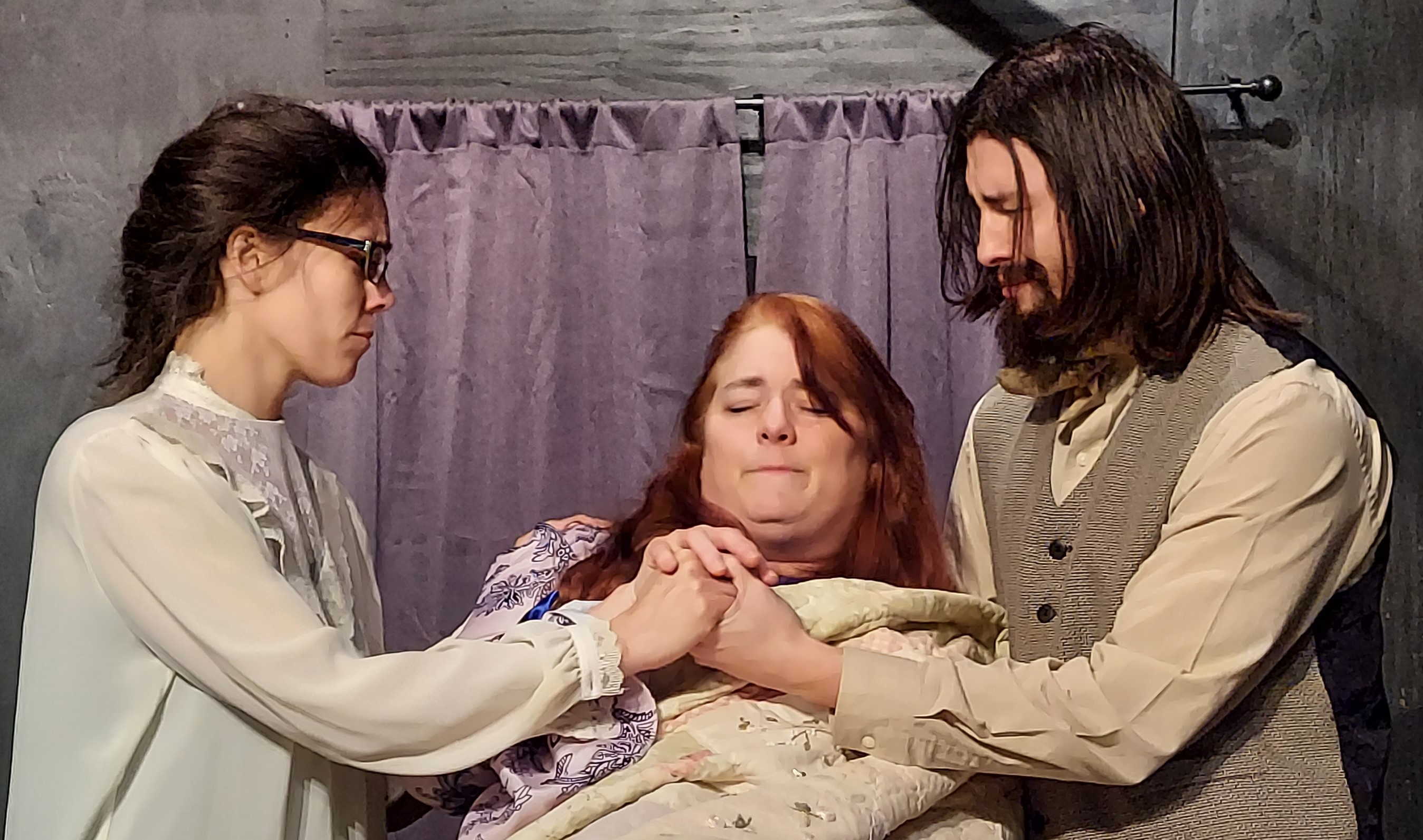 Thank you to Alfred Osmon who not only persevered through some adversity but also made some dramatic changes in the process. Thank you to Jahn Mozey for – among other things – taking one of my favorite pieces of acting direction and turning it into a great joke during “In Stitches”. Thank you to Arissa Dakins for a perfect performance in what was arguably the most intense scene of the entire show. Thank you to Adam Reinke for anchoring (get it? it’s a PUN!!) the story, for being our surrogate audience, and for bringing in Molly, our unofficial mascot and sled dog.